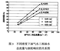 4、不同密度下的油、气、水总流量与涡轮响应的关系