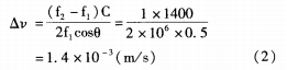 式中:v**体速度;f一晶体T1的发射频率;f2一晶体R1接收的频率;θ一超声波束与流体流向之间的夹角;C一声速。