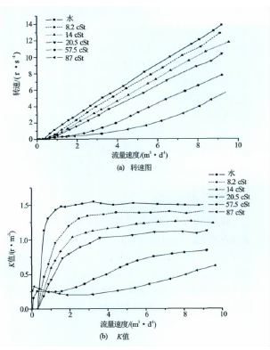 图1液体dn50涡轮流量计对不同茹度条件的响应转速图和K值
