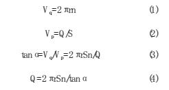 式中,r为叶轮平均半径;Vq为平均半径r处流体的切向流速;n为涡轮转速;Vp为轴向平均流速;S为叶栅的流通截面积;Q为体积流量。