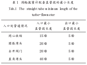 由式(5)可计算出涡轮流量计在校验和使用时配套直管段的量小长度(见表1):