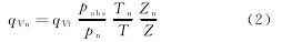 式中:qVn———标况下的体积流量,m3/s;pabs———工况下测得的气体的绝对压力,kPa;pn———标况下的参比压力,101.325kPa;Tn———标况下的参比热力学温度,293.15K;T———工况下测得的气体热力学温度,K;Zn———标况下的气体压缩因子;Z———工况下的气体的压缩因子。