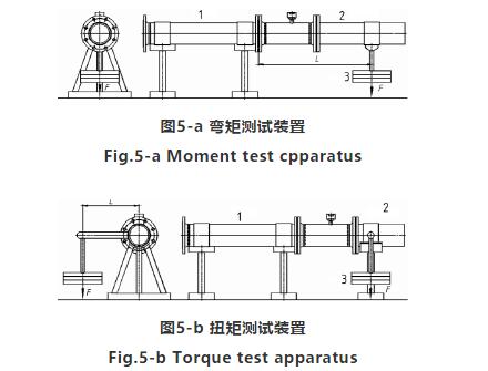 对于高压智能一体化气体涡轮流量计来说,还应当详细说明流量计所需求的弯曲与扭力力矩的保护水平。此数据是通过试验直接获得,弯矩测试装置如图5-a 所示,直管段1 连接气体流量标准装置,在直管段2 预先确定的力臂L 位置附加垂直方向的力F 而形成弯矩M;扭矩测试装置如图5-b 所示,直管段1 连接气体流量标准装置,在直管段2 侧面预先确定的力臂L 位置附加垂直方向的力F 而形成扭矩T。而弯矩与扭矩均是作用于流量计入口与出口法兰处。由于此项测试主要针对流量计强度的校核,为了更有说服力、提高可靠性,故将铝合金壳体的中低压涡轮流量计DN80-G100用于此次测试。而整个测试过程是将砝码F 按EN12261 表10 中要求1 倍、2 倍直至做到4 倍(即力矩为3 040 N·m),未发现流量计壳体有任何异常变化。而测试结果表明在施加砝码F 之前、过后得到的指示误差与施加砝码F 之前的指示误差未有明显变化。