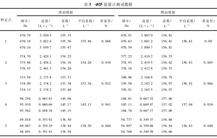 Φ25流量计测试数据如表3所示。