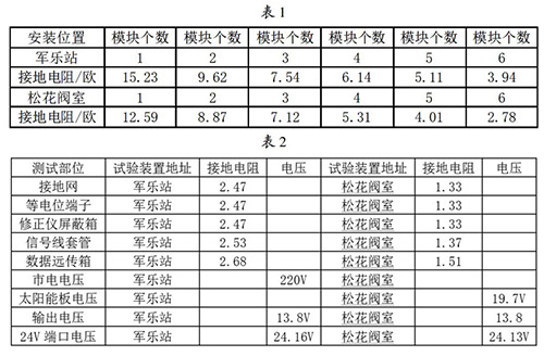 接地网的安装与连接:接地网是整个菜籽油流量计防雷试验比较关键的一个内容,能不能准确的论证试验的有效性,必须保证接地网达到标准的接地电阻,通过对实地地电阻率的测试,初步选择6个接地??槁裆璨⑴溆媒底杓潦褂?,边安装边测试直到达到标准值后才引入等电位箱。在军乐站和松花阀室安装??椴⒉馐允菁?。