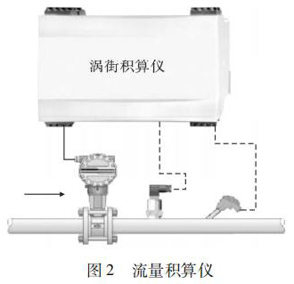 二是采用蒸汽流量积算仪,将气体涡轮计量表所测工况体积流量以及温度和压力变送器所测信号传到蒸汽流量积算仪,如图 2 所示由蒸汽流量积算仪进行补偿运算。蒸汽流量积算仪内置过热蒸汽以及饱和蒸气补偿算法,可以输出质量流量、标准体积流量甚至热量和比焓等。