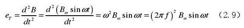 从上图 2.5 中可以观察到两个电*、励磁线圈、转换器内阻之间形成了一个闭合回路,将此回路称之为初级绕组,从理论上进行分析,磁力线 B 应当平行于励磁线圈所产生的磁感应线,但在实际的应用过程中由于工艺差异,因此无法达到理想状态,会产生磁力线穿过励磁线圈磁感应线的情况,此时将会产生相应的感应电动势,将此部分感应电动势称为变压器效应。此效应同样满足于楞次定律,利用楞次定律进行计算可得如下电动势: