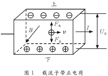 情形1:单种载流子。如图1所示,若载流子带正电荷,则载流子在洛伦兹力作用下会向下偏转,导体下表面积累正电荷。同时,上表面失去正电荷而带上负电,从而使下表面电势高于上表面。