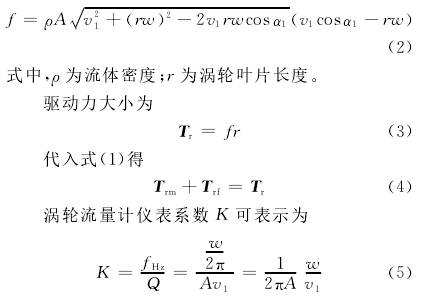 涡轮在转动时所受的力矩大致可分:流体对涡轮的推动力矩Tr,机械摩擦力矩Trm,流体对涡轮产生的流动阻力矩Trf和电磁阻力矩Tre。涡轮运动方程可以表示为