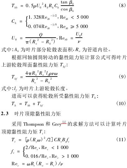 依据Tsukamoto的计算,叶片部分轮毂黏性阻力矩Thb的计算式为: