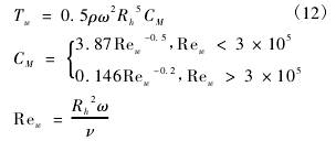根据同轴圆筒黏性阻力矩计算方法可得轴承黏性阻力矩Tb