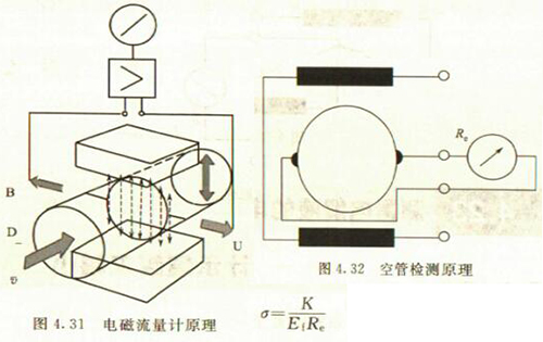 非满管检测也是基于电导率检侧的方法。在图4.33所示的电磁流量传感器中,增加了一个(或一对)非满管检测电*。当导管内液体满管时,顶部电*与其他电*之间的电阻值很小;而当存在非满管情况时,顶部电*与导电液体之间有气体阻隔,所以电*电阻显著增大,从而做出非满管判断。
