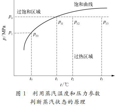 利用蒸汽的温度压力参数自动判断蒸汽处于过热状态还是饱和状态,原理如图1所示。关键是判断蒸汽的温度压力值是落在临界饱和曲线的下方还是上方,如果落在下方,则为过热状态;如果落在上方,则为饱和状态。