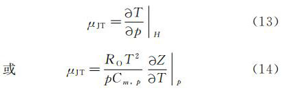 式中:T--绝对(热力学)温度;p--流经管道的流体静压;H--焓;RO--通用气体常数;Cm,p--定压摩尔比热容;Z--压缩系数。