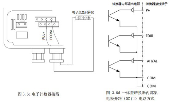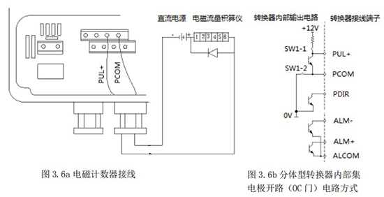 3.4.5 频率(脉冲)、上下限报警、流向标示等输出均为集电*开路的电平输出信号。
