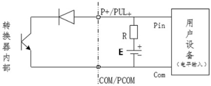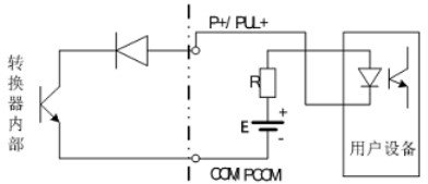 PUL+/ P+、ALM+(AH)、ALM-(AL)和 PDIR(FDIR)均为集电*开路(OC 门)输出(参阅图 3.6b、3.6d,用户接线时必须参照如下电路外接电源和负载: