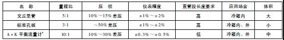 空分设备低温液体流量的测量从原理上来分,有差压式流量计、涡街流量计、科里奥利质量流量计等。但由于低温液体特性及各方面外在因素的影响,流量计在测量过程中或多或少会存在着一些问题,需要引起重视。差压式流量计的性能比较见表1。
