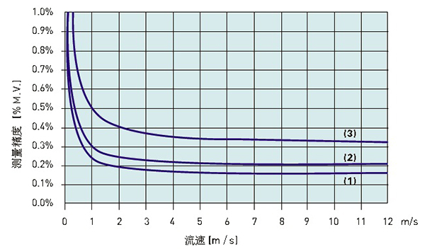 污泥流量计实质是测量介质的流速,它是速度式流量计。一般电磁流量计推荐流速在0.3m/s-5m/s,在这个范围内,流量计测量精度高、线性好、水力损耗小、介质对流量计传感器衬里和电*的磨损也较小。以某品*电磁流量计选型样本提供的流速曲线为例(见图3),可以看出流量越小、流速越慢,测量误差越大,曲线在0.3m/s处存在拐点。
