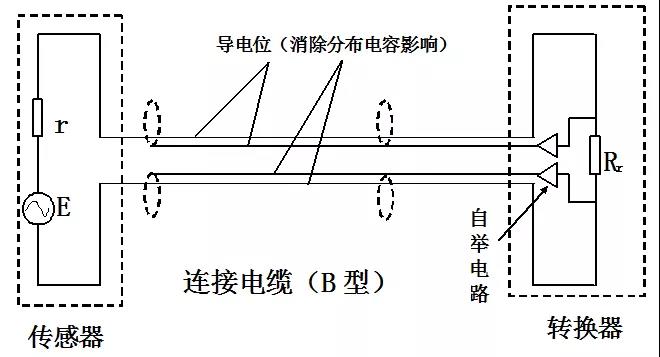 当Ri>>r,C0(连接电缆二线间分布电容)很小时,Ei≈E;当介质电导率很低,转换器输入电压衰减Ei,而C0分布电容并联效应显著,且波形发生畸变。当被检测介质电导率低,传感器与转换器间距长时,使用多重屏蔽电缆的概率越高。