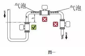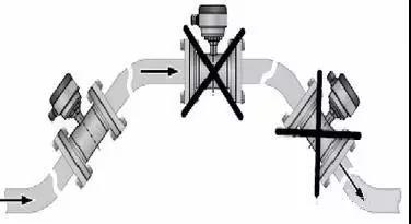 当出口为放空状态时,传感器不应安装在管道放空之处,应安装在较低处。传感器安装在管道下方处时,应保证传感器内被液体充满,不能出现空管状态。