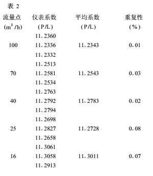 对与前面例子相同的涡轮流量传感器进行的另一次检定,采取了上述的隔离措施,检定数据见表2。