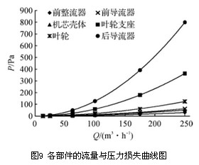 流量计各部件的压力损失随流量变化的趋势与流量计总压力损失随流量的变化趋势相同,其拟合公式为系数不同的二次多项式。各部件的压力损失与流量呈二次函数关系,随着流量的增加,压力损失显著增加。